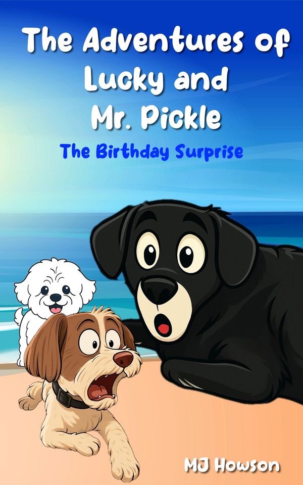 The Birthday Surprise, the fourth book in The Adventures of Lucky and Mr. Pickle series, begins the second of three trilogies. Our story jumps three years into the future. Mr. Pickle is no longer a puppy, but he’s still full of energy and curiosity. Lucky celebrates his birthday with a day of endless surprises. He and Mr. Pickle will meet old friends, make new ones, and get spoiled with treats. Papa has a list of things planned for them, but the biggest surprise will be the one no one saw coming.
