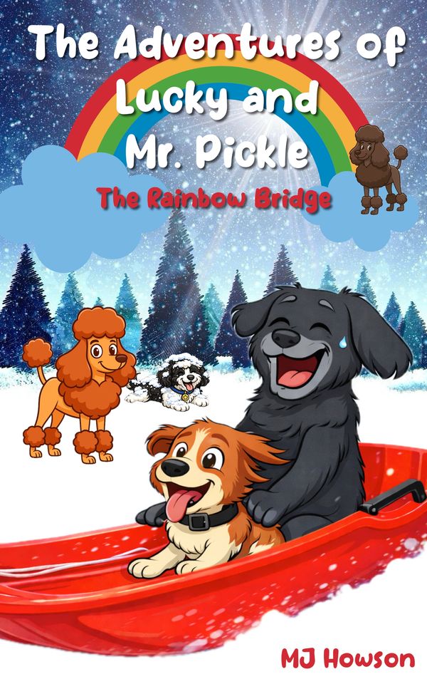 The Rainbow Bridge, the eighth book in The Adventures of Lucky and Mr. Pickle series, finds Lucky getting some very bad news about why he’s been feeling so ill. Before telling his brother of his fate, Lucky takes Mr. Pickle on a thrilling snowy adventure – a day of sledding! During their slippery outing, they run into some old friends who join in on the fun. The joyous day gives Lucky the courage he needs to tell Mr. Pickle about his health and what he needs from his little brother going forward.